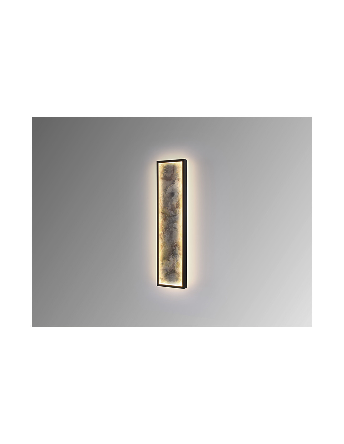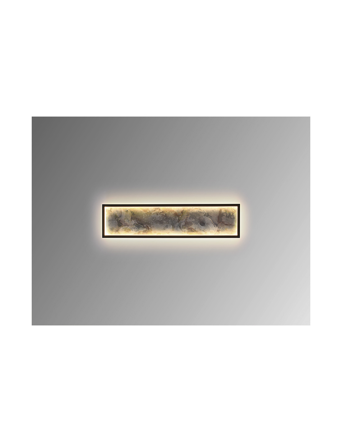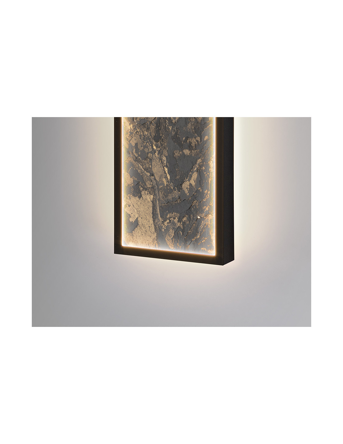 Lámpara de pared o plafón de techo rectangular. Realizada en metal acabado negro y pizarra multicolor, con marco de acrílico opal. Luz LED 52W, 947 lm, cambio color CCT, 3000/4000/6000K.