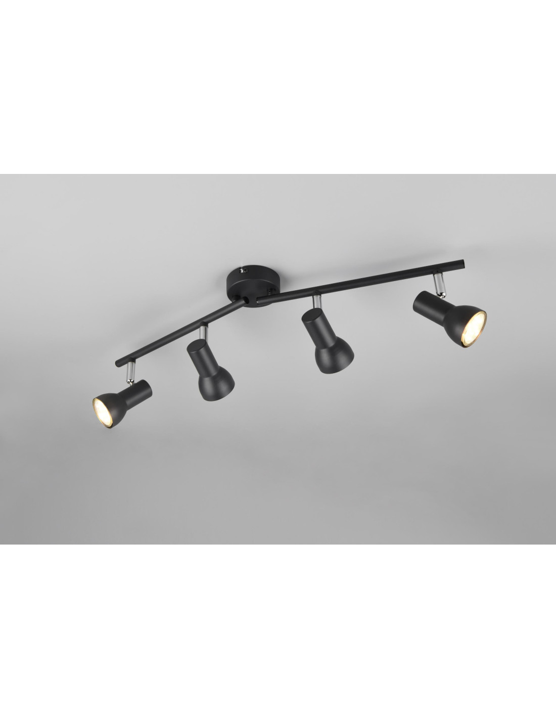 Los focos de la serie CANTAR impresionan por su diseño atemporal y su versatilidad. Gracias a los focos móviles, el plafón y aplique de cuatro luces es ideal como fuente de luz adicional en la cocina o en habitaciones pequeñas y crea un ambiente acogedor en su hogar. El diseño en color negro mate confiere a la luminaria un aspecto ligero y discreto que se integra a la perfección en cualquier interior. Se recomienda el uso de fuentes de luz LED para una iluminación de bajo consumo. Son una alternativa ideal a las fuentes de luz halógenas convencionales y ofrecen una gran calidad de luz y un ahorro energético de hasta el 80%. Con las fuentes de luz LED, también se beneficiará de una larga vida útil y una baja generación de calor, al tiempo que protege el medio ambiente.