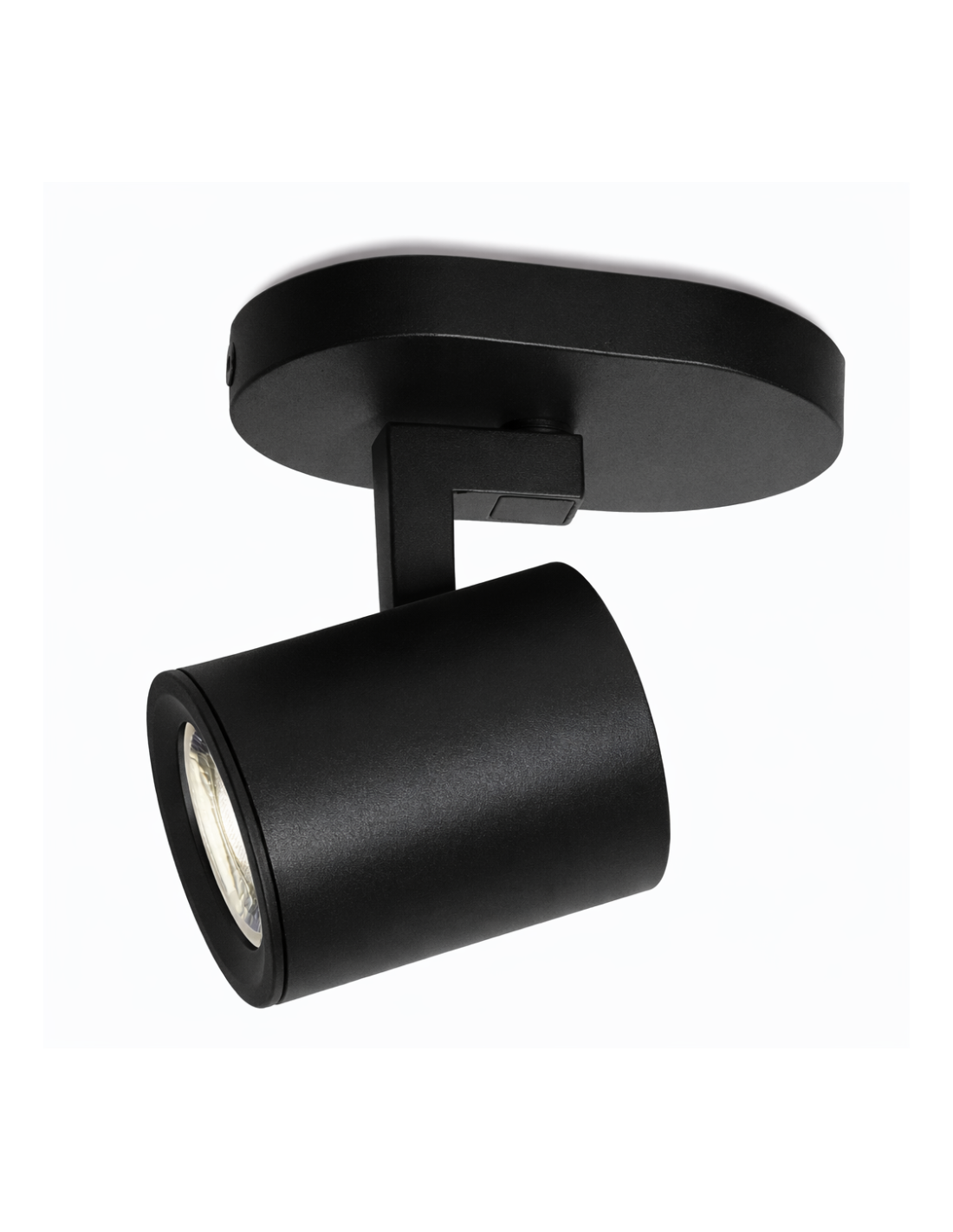 Base foco 1 luz color negro. Foco orientable con cuerpo de aluminio. Ideal para una iluminación directa, tanto para techo como para pared. Portalámparas GU10 apto para bombillas led. Disponible también con 2 y 3 luces.